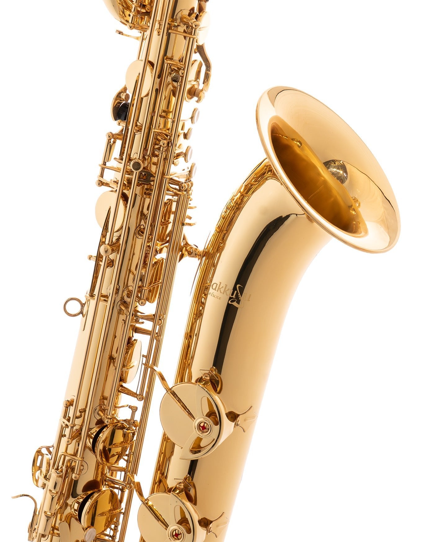 El Sakkusu Deluxe es una versión mejorada de nuestro saxofón barítono Sakkusu estándar, ofreciendo una respuesta más completa y una mayor consistencia de tono en todo el registro del instrumento. Este saxo, un instrumento económico para los estándares de un barítono, ofrece un rango dinámico impresionante y debería funcionar bien en prácticamente cualquier contexto musical. El registro agudo, que puede ser un problema en algunos barítonos más económicos, se percibe con gran seguridad.