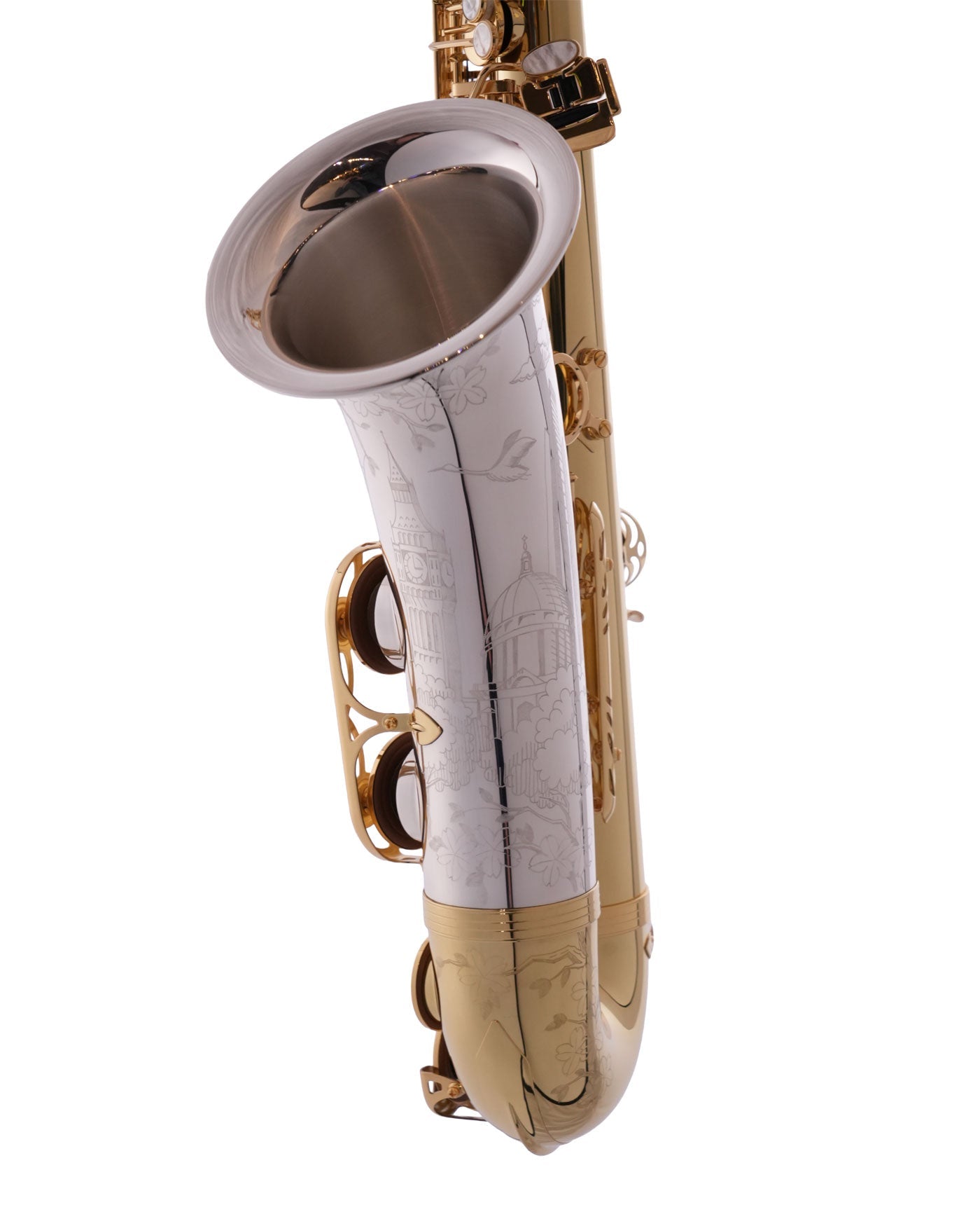 To celebrate our 30th Anniversary, Yanagisawa have genuinely gone out of their way to create something incredibly rare: just five limited-edition saxophones made exclusively for our customers, 2 Tenors and 3 Altos, based on the WO33 platform, featuring a solid silver bell and neck with a brass body, finished with engraving inspired by the London skyline with Hokusai-style detailing.